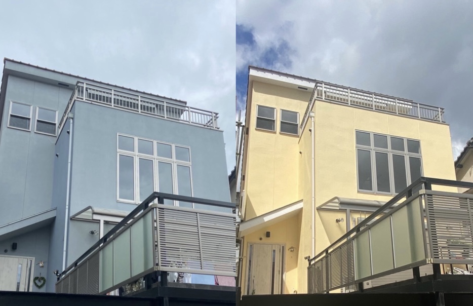 先日、江戸川区松島にお住まいのS様邸にて、外壁および屋根の塗り替え工事が完工いたしましたのでご紹介します。